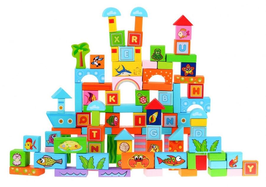 Набор деревянных прочных блоков - это предложение для детей от 36 месяцев. Блоки изготовлены из высококачественного дерева, окрашены безопасной краской, не имеют острых краев и гладкие. Они прослужат вашему ребенку долгие годы. Блоки имеют разную форму и цвет, что побуждает ребенка строить дома, башни, автомобили и т. Д. В набор входит графическая инструкция с примерами расставляемых моделей. Большинство блоков украшено изображениями морских животных, буквами или фигурами.