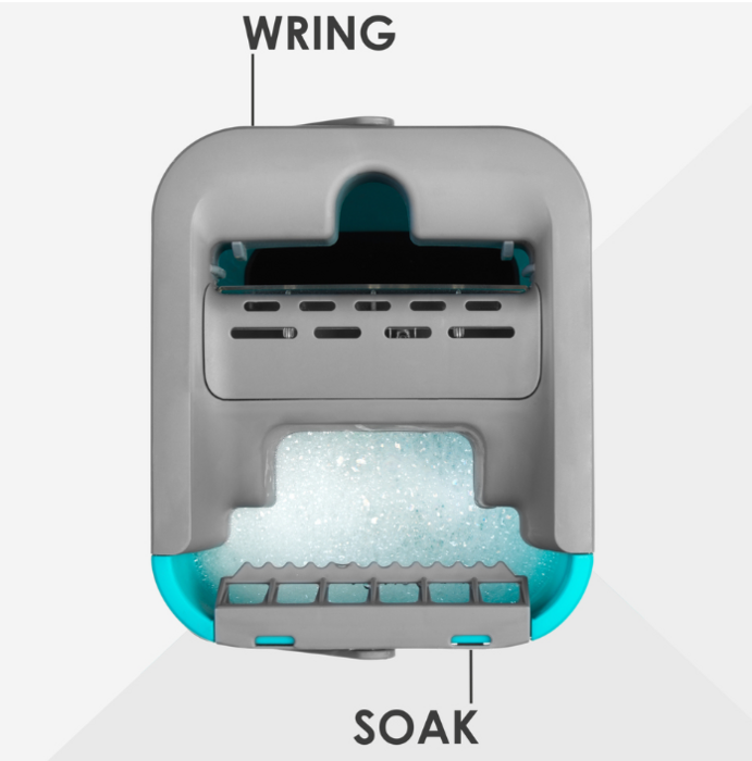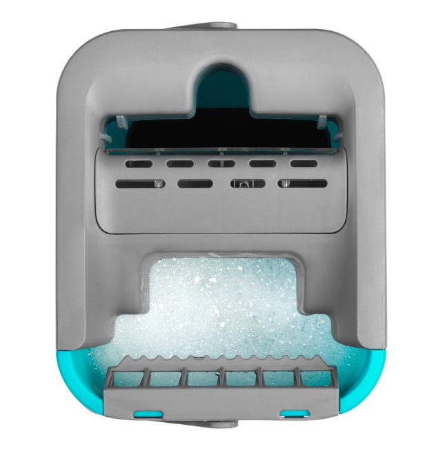 Встроенный отжим и скребок для грязи дополняют ведро, что значительно упрощает удаление лишней воды и грязи с насадки швабры.