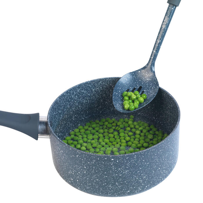 Совершенствуйте свои навыки и упростите приготовление пищи с каменным набором из 5 кухонных принадлежностей Nightfall от Russell Hobbs. В этот кухонный набор входят шумовка, ложка, лопатка с прорезями, ложка для спагетти и ковш, чтобы улучшить свои кулинарные способности. Разработанный с учетом потребностей пользователя, набор может похвастаться эргономичными мягкими ручками и удобными подвесными крючками для удобного хранения. Антипригарное покрытие с эффектом мрамора обеспечивает легкую и быструю очистку после приготовления вкусных блюд.