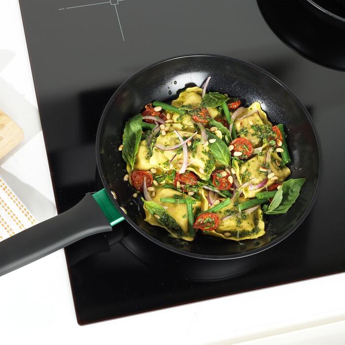 Эта сковорода Russell Hobbs Verde Thermocollar размером 24 см изготовлена из переработанного кованого алюминия и идеально подходит для домов, заботящихся об окружающей среде.