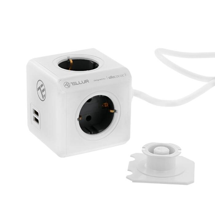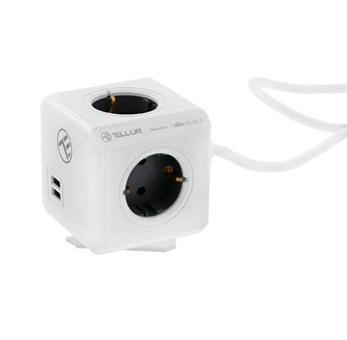Tellur Power Cube Extended, Power strip 4 Outlets + 2xUSB ports, 1.5m cable white