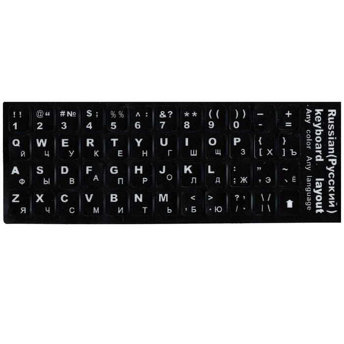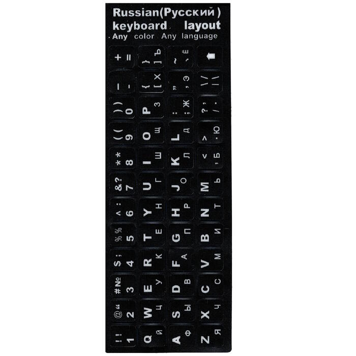 Наклейки для клавиш клавиатуры из прочного материала. Благодаря прочному материалу, яркой печати текста и сильному клею, это отличное решение для обеспечения клавиатуры дополнительной раскладкой QWERTY. Клавиши с русской раскладкой QWERTY имеют особый шрифт, который обеспечивает удобное чтение.