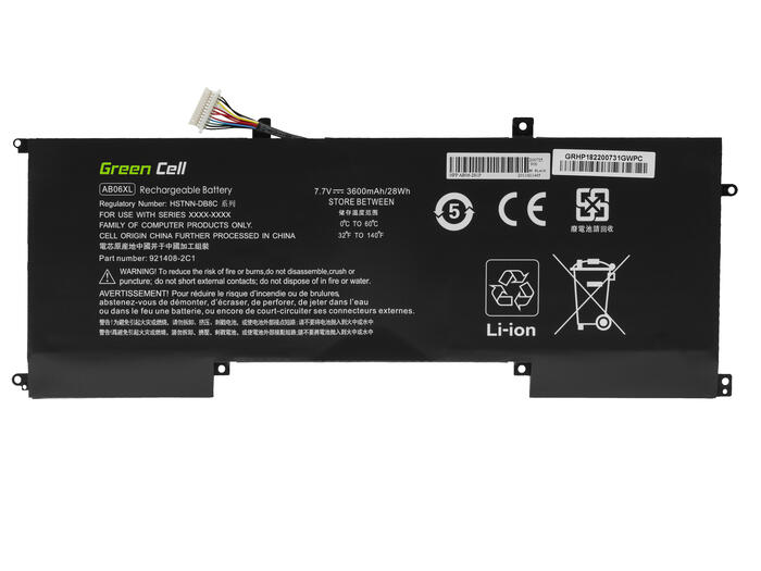 Garantija: 12 mēneši; Šūnu ražotājs: Baterijas: Green Cell; Spriegums: 7.7V; Bateriju skaits: 6; Bateriju tehnoloģija: Green Cell: Li-Poly; Krāsa: melna; Aizsardzība pret pārmērīgu izlādi: Aizsardzība pret pārslodzi: Jā; Aizsardzība pret pārslodzi: Aizsardzība pret pārslodzi: Jā; Produkta kods: HP182; Ražotājs: HP182; Ražotājs: Ražotājs: Green Cell; Kapacitāte: 3600mAh