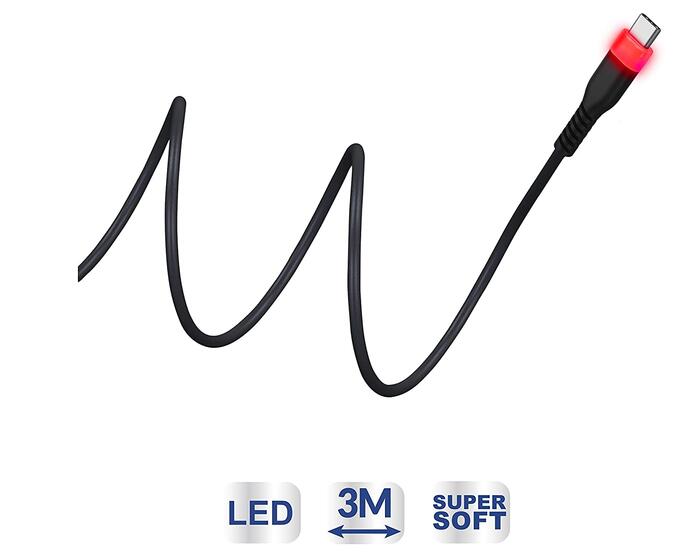 Супермягкая технология против узлов: больше никаких скрученных и надоедливых кабелей. Встроенный светодиод, ваш кабель загорается при подключении, вы не потеряете его из виду даже в темноте.