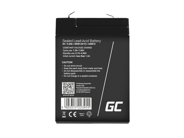 Green Cell AGM VRLA 6V 3.4Ah maintenance-free battery for the alarm system, cash register, toys
