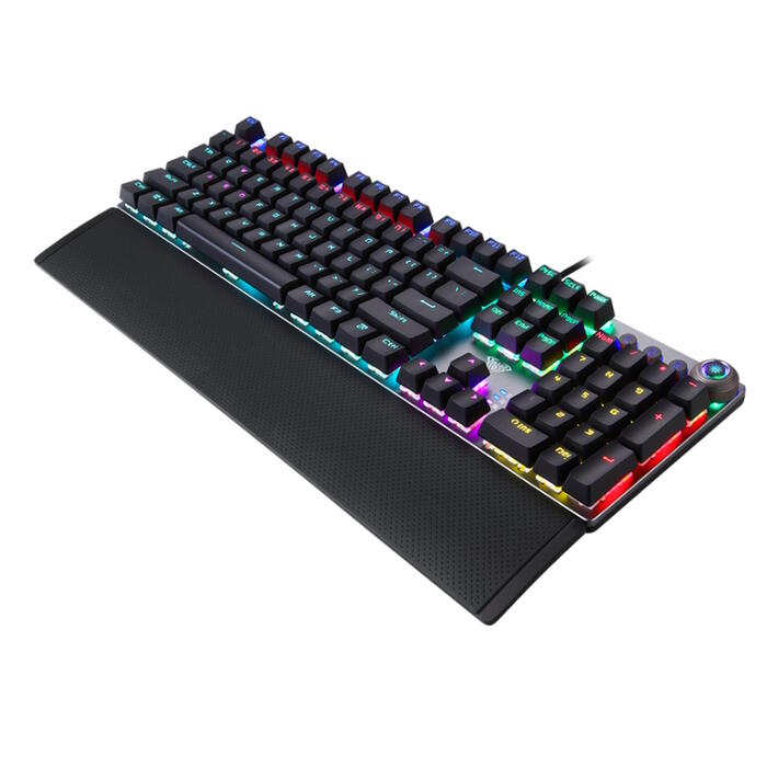 Серия F2058 — это подлинная клавиатура KRGD Mechanical Keys Gaming USB с проводным подключением, полноразмерная (106 кнопок) клавиатура с раскладкой ENG и RUS, специально оснащенная 7-уровневой светодиодной подсветкой Ambiglow, а также специально разработанная — удобная форма и новейшие технологии AULA. механические клики, которые созданы для компьютерных игр и повседневного использования. Серия F2058 изготовлена из высококачественных материалов из алюминиевого сплава. F2058 — это дополнительная панель для упора для рук.