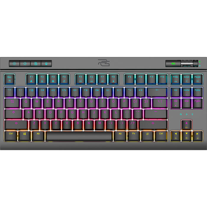 Клавиатура выполнена в современном игровом стиле и оснащена механическими клавишами. Благодаря переключателям Outemu и длительному сроку службы клавиш (50 миллионов нажатий) клавиатура Proove Gaming Sideswap обеспечивает максимальную надежность и долговечность. Клавиатура не имеет NUM-пада, что позволяет сэкономить место на игровой поверхности. Режим работы Игровая клавиатура Proove Gaming Sideswap работает сразу после подключения к компьютеру или ноутбуку с помощью кабеля Type-C - USB или Type-C - Type-C. Время автономной работы не зависит от зарядки или аккумуляторов, что означает максимальное время работы. Особенности Клавиатура оснащена клавишами быстрого доступа, с помощью которых можно управлять системными операциями на компьютере: регулировкой громкости, гибернацией (спящим режимом), поиском, калькулятором и выключением. Вы можете изменить подсветку клавиатуры, чтобы получить разные ощущения во время игры. Регулируемая RGB-подсветка имеет различные режимы, цвета и многое другое, так что не ограничивайте свою фантазию и подстраивайте аксессуар под свои нужды.