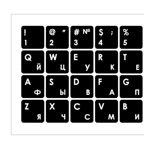 Наклейки высокого качества для клавиатуры с дополнительным уровнем защиты от влаги. 47 наклеек для всех обязательных клавиш.