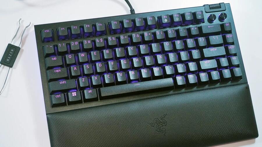 Razer BlackWidow V4 75% — это компактная, высокопроизводительная механическая игровая клавиатура, разработанная для геймеров, которые хотят сэкономить место на столе, сохраняя при этом полную функциональность. Она сочетает в себе минималистичный форм-фактор 75% с превосходными игровыми функциями и возможностями настройки.