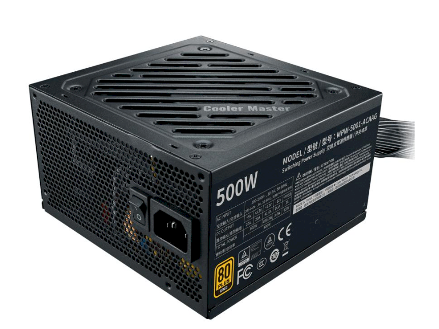 Cooler Master G500 Gold (MPW‑5001‑ACAAG‑NL) — это надёжный блок питания мощностью 500 Вт для настольных ПК, обеспечивающий эффективное и стабильное питание компонент. Сертификация 80 PLUS Gold означает высокую энергетическую эффективность до примерно 90 % при типичной нагрузке, что снижает потери энергии и тепловыделение. Для охлаждения используется 120 мм вентилятор с гидродинамическими подшипниками (HDB), обеспечивающий тихую работу при стандартной нагрузке. Блок питания оснащён фиксированными (не модульными) плоскими кабелями и включает все необходимые разъёмы: 24‑контакт ATX, 8‑пин и 4+4‑пин EPS (CPU), 2 × PCIe 6+2‑пин, 6 × SATA и 3 × Molex, что делает его подходящим для типичных игровых и офисных систем. Блок соответствует спецификации ATX 12V V2.52 и имеет комплекс защит (OVP, UVP, OPP, OTP, SCP, OCP) для безопасности при эксплуатации. Производитель предоставляет 5‑летнюю гарантию.