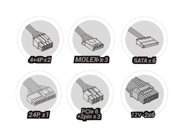 3x Molex 4 PIN · 1x 12 В-2x6 PIN
