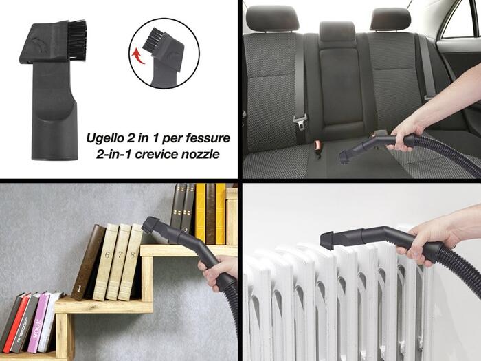 Мощный двигатель мощностью 1000 Вт позволяет легко пылесосить мелкие частицы, крупную грязь и жидкости.