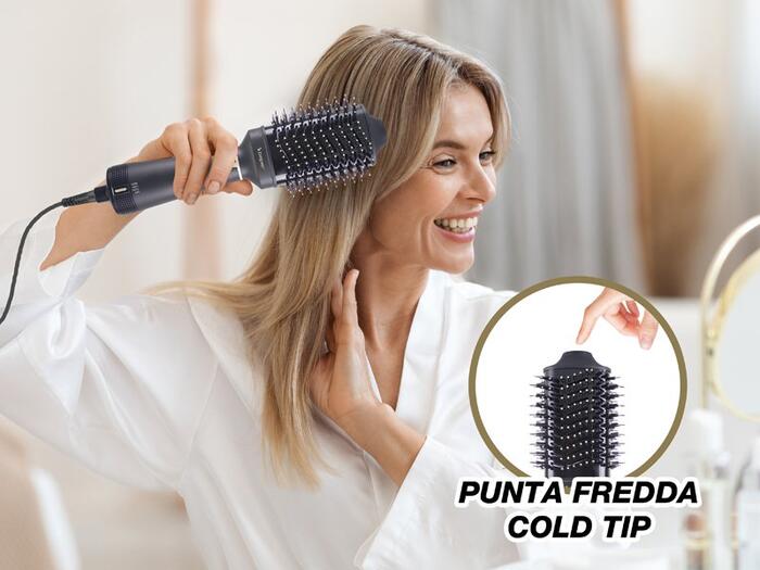 Щетка-фен овальной формы, которая выпрямляет, придает объем и подкручивает кончики волос.