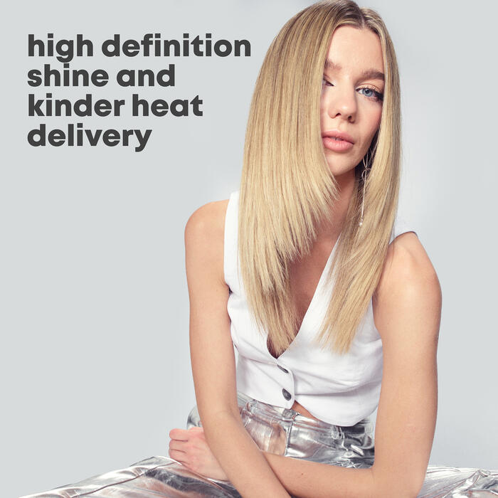 Керамические и генерирующие инфракрасное излучение пластины, пропитанные сверхгладким кератином Progloss™, аргановым и кокосовым маслами для бережной передачи тепла и ультрагладкой поверхности.