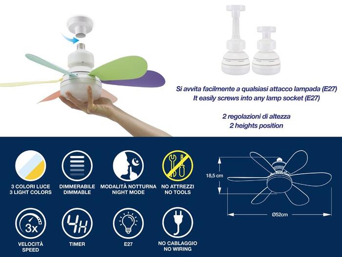 | Специальные отметки | Двойная функция (вентиляция + освещение), 3 цвета освещения на выбор (белый, естественный, теплый), регулируемая интенсивность света, функция ночника, бесшумная работа, подходит для дома, офиса, гаража |