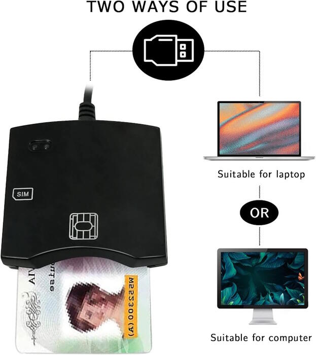 CP ID1 2 в 1 - идеальное решение для дома и офиса - для чтения ваших смарт ID-карт, а также SIM-карт GSM-смартфона или мобильного телефона. Стандартное подключение USB позволяет использовать его на платформах Windows и Mac, а также Linux.