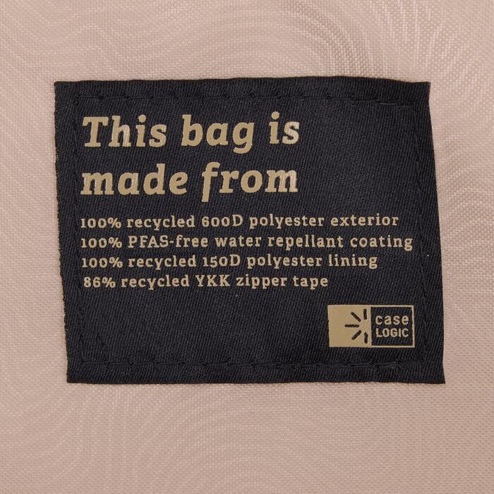 Эта сумка изготовлена из 100% переработанного полиэстера плотностью 600D, подкладки из полиэстера плотностью 150D, полипропиленовой ленты и ленты-молнии YKK, на 86% переработанной. Водоотталкивающее покрытие также не содержит ПФУ — химикатов, вредных для окружающей среды.