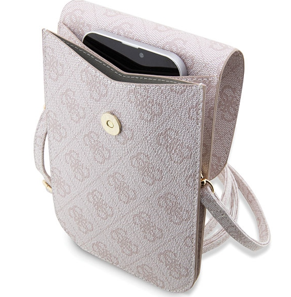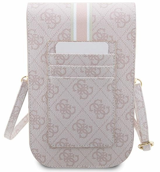 Сумка для телефона Guess 4G Stripe - элегантная коллекция, украшенная печатным логотипом Guess. На протяжении десятилетий бренд Guess ассоциировался с превосходным дизайном и высочайшим качеством. Новая коллекция защитных чехлов для телефонов в полоску 4G основана на тех же ценностях. Он украшен напечатанным логотипом 4G на роскошной текстуре кожзаменителя. Элегантная сумка защищает все устройство целиком, благодаря встроенному вырезу вы можете заряжать телефон, не вынимая его из чехла. Сумка имеет встроенные ручки, к которым прикреплен практичный шнурок, отделанный золотистыми элементами. Создайте свой собственный уникальный стиль и придайте своему телефону утонченную фирменную эстетику.
