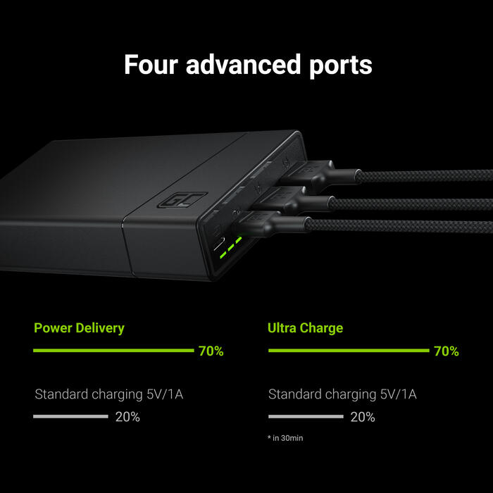 Greencell PowerPlay 30 - black powerbank with 30,000mAh, 22.5W, 4 ports
