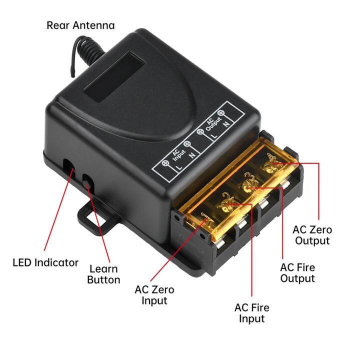 Cerhot CR-BSAC100 Модуль реле переменного тока AC 90-250V 30А и одноканальный беспроводной пульт дистанционного управления с частотой 433 МГц дальностью до 500 метров