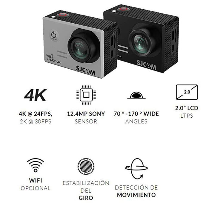 ModelElite SJ5000Xgraphics processorSony Exmor IMX078 ModelElite SJ5000Xgraphics processorSony Exmor IMX078chipsetNovatek NTK96660LCD display2.0 "LCDLens170 ° A + HD wide angle lens 6Gmenu languagePolish / Angielski / German / French / Spanish / Italian / Portuguese / Traditional Chinese / Simplified Chinese / Japanese / RussianSlow-motion function-2x / -4x / -8xImage StabilizationGyro Anti-ShakeWDRYesResolution 4K @ 24fps (3840 * 2160 interpolated) in the recording mode2K (2560 × 1440) @ 30FPS 1080P (1920 x 1080) @ 60FPS 1080P (1920 x 1080) @ 30FPS 720P (1280 x 720) @ 120fps WVGA @ 240fps (Slo-Mo)video formatMP4compression formatH.264Picture Resolution12M / 8M / 5MMemoryMicro SD cardcamera modesSingle / Time (2s / 5s / 10s / Continuous)operating frequency50Hz / 60HzUSB portUSB 2.0Power5V / 1Abattery capacity900mAhpower consumption400mA @ 4.2VEstimated time 1080P / 90 minutesrecordingWiFi moduleYesIOS app