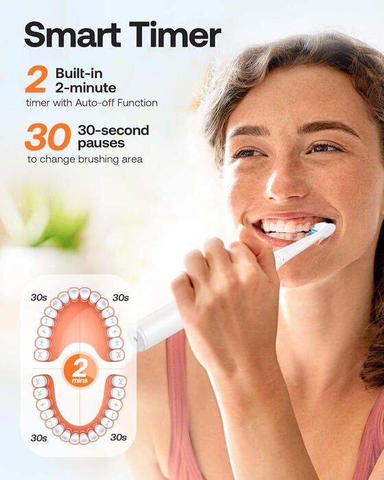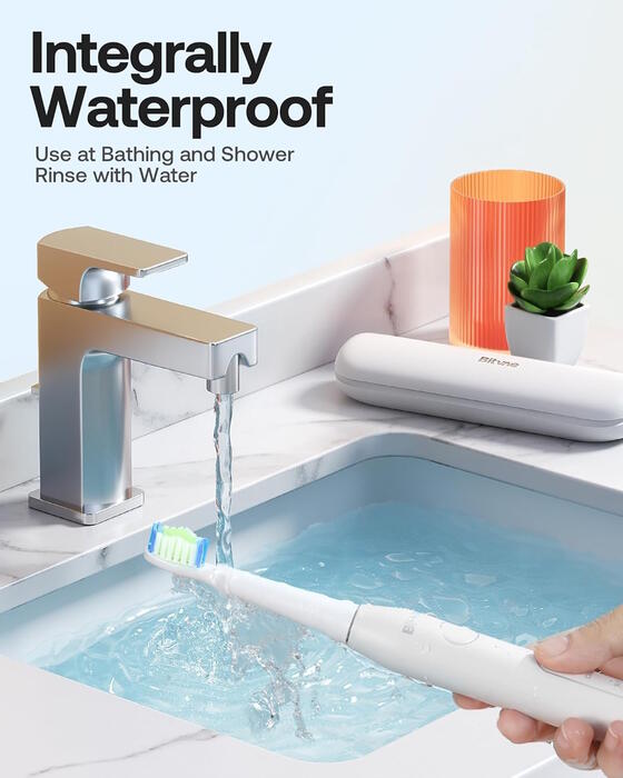 Shona Электрическая IPX7 Ультразвуковая зубная щетка с 5 режимами + дорожный футляр (2 насадки в комплекте) Белый